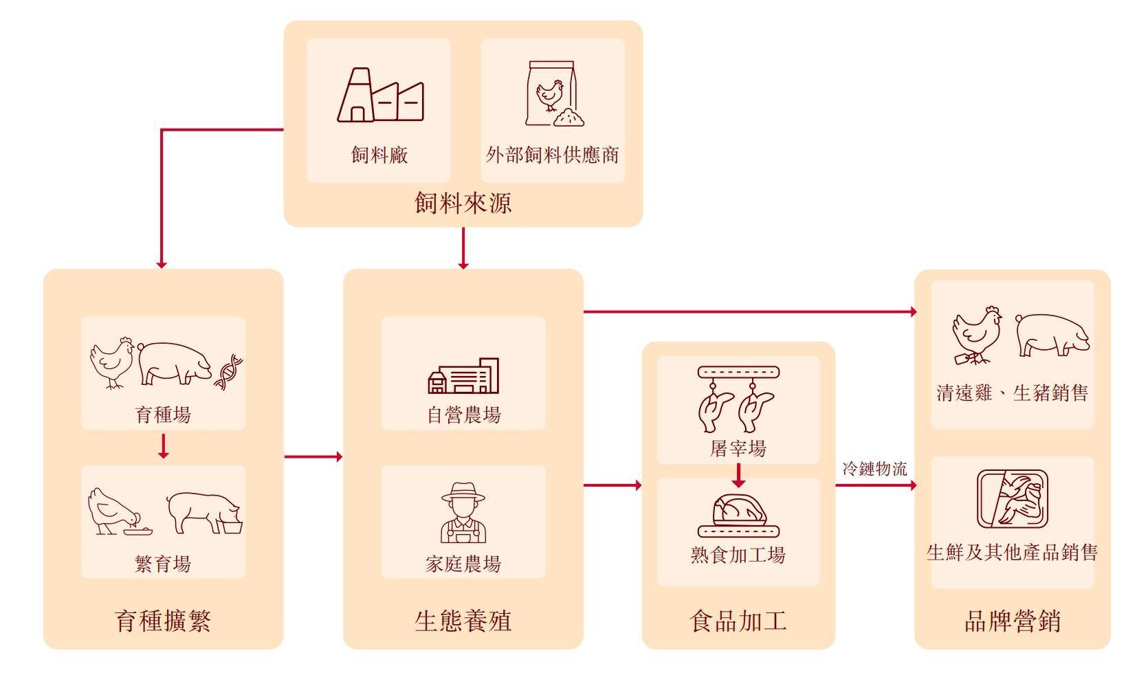 二十多年的时间策略吧,天农集团逐步建起育种、养殖、饲料、加工、营销的垂直一体化产业链。据悉,截至2025年6月30日,公司拥有4间饲料厂、16家鸡场、52家猪场及1家屠宰场,产业链基础设施完善。